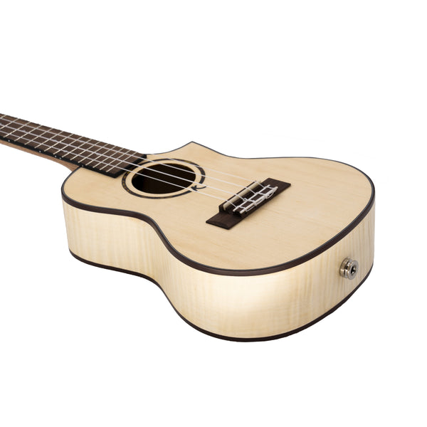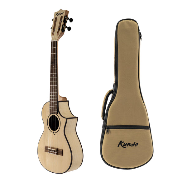 The Kunde Saturn 23″ EQ (concert and equalized) is a ukulele made of solid spruce wood, which gives it a bright, crisp and precise sound.